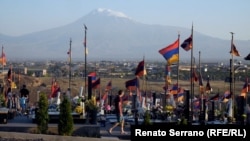 – Дочки муж и его брат [похоронены здесь]. Моя дочка в Карабахе жила со своим мужем, а сейчас продолжает жить со своими детьми и настроена там оставаться. А если все выедут, что там останется? Подарим азербайджанцам? Она гражданка Арцаха, почему она должна убежать оттуда? Это деньги они делают, больше ничего. А ребята защищали свою родину.