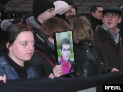 В руках молодежь держала фотографии Юрия Червочкина. А среди митингующих ходила девушка и собирала подписи в адрес облпрокуратуры с требованием ускорить расследование убийства Червочкина - сторонника не только национал-большевиков, но и коалиции «Другая Россия».