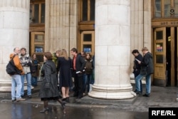 Через 20 минут, с другой стороны подошла группа молодых людей в куртках «Молодой гвардии». Они раскидывали листовки...