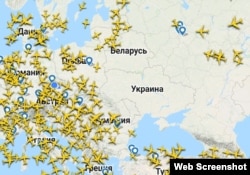 Так сейчас выглядит небо над Украиной на карте сервиса Flightradar24: