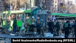 Фотокорреспондент Украинской службы Радио Свобода Сергей Нужненко побывал на месте падения обломков российской ракеты, сбитой украинской системой ПВО, в киевском районе Куреневка.