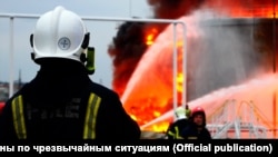 Фотографии тушения пожара на нефтебазе публикует Государственная служба Украины по чрезвычайным ситуациям.