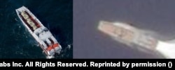 Тот, что находится дальше от острова, был идентифицирован по просьбе Радио Свобода экспертом по российским военно-морским силам Эйч Ай Саттоном как десантный катер проекта 21820 "Дюгонь".