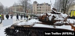 В Латвии множество мероприятий запланировано на 24 и 25 февраля. Сегодня на площади Свободы в центре Риги состоялся митинг в поддержку украинцев, а у посольства России проходят пикеты. Там же установлен уничтоженный после вторжения в Украину российский танк