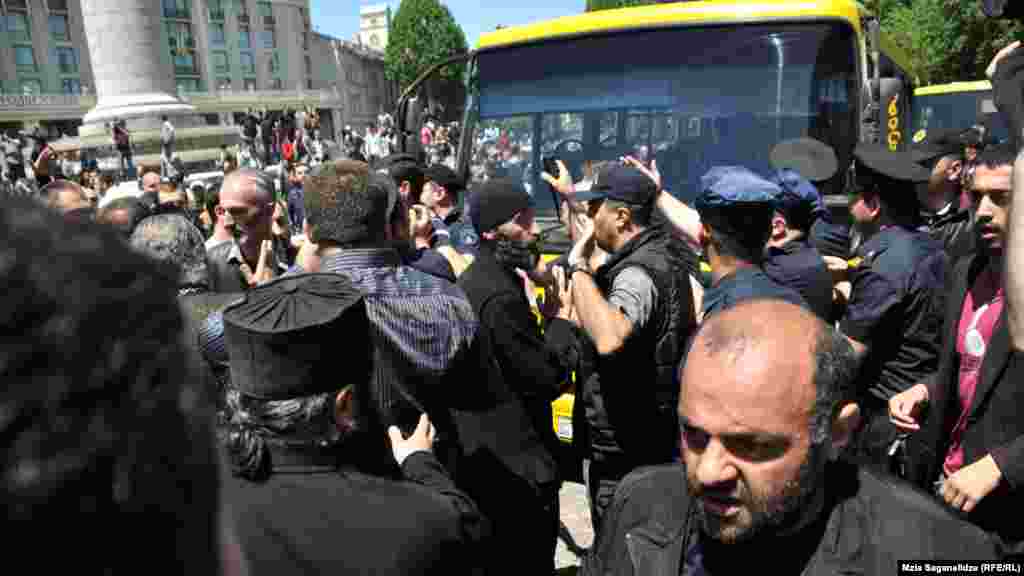В Тбилиси тысячи сторонников православной церкви помешали сегодня проведению шествия представителей сексуальных меньшинств, приуроченного к Международному дню борьбы с гомофобией. Они прорвали оцепление, заполонив улицу, где шествие должно было состояться, и заставив активистов ЛГБТ-движения уехать в автобусах под охраной полиции.