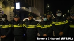 Эта военизированная часть была введена на проспект, в том числе в здание Госуниверситета, ещё в воскресенье вечером, когда "Коалиция за изменения" впервые разместила палатки на перекрёстке проспекта Чавчавадзе и улицы Варазис Хеви, затруднив тем самым движение автотранспорта сразу в нескольких районах грузинской столицы.