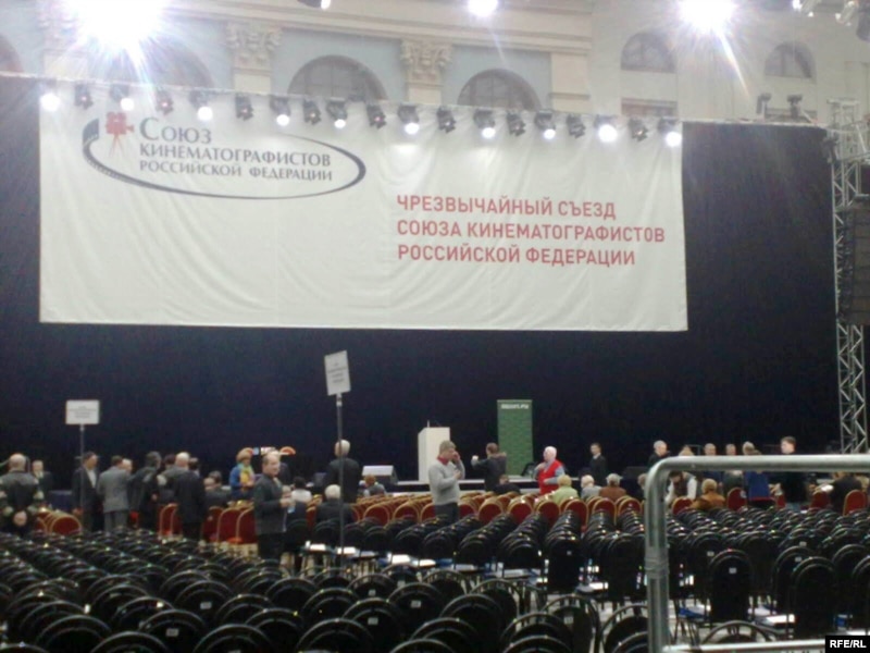 Перед открытием чрезвычайного Съезда кинематографистов в Гостином дворе