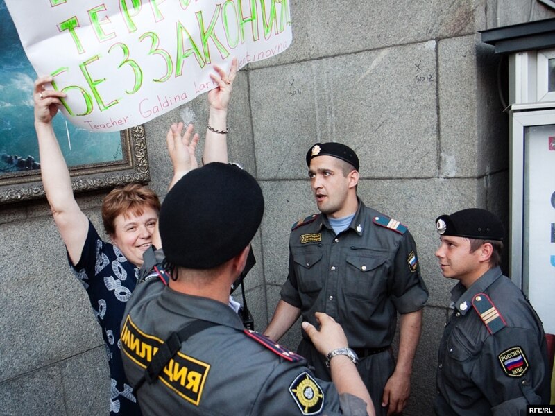 Акция приобрела спонтаный характер. Кто-то показывал Конституцию России, напоминая о праве на собрание...
