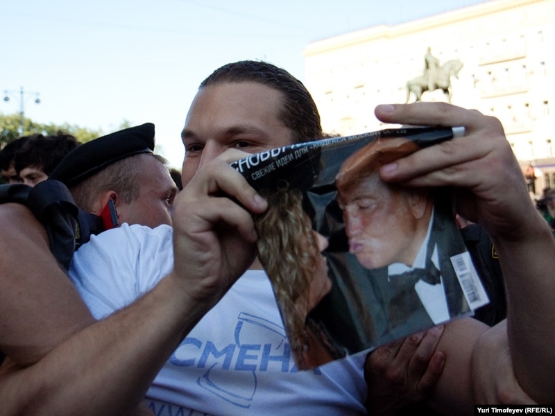 Этого гражданина задержали за журнал с фотографией целующихся Юрия Лужкова и Елены Батуриной.